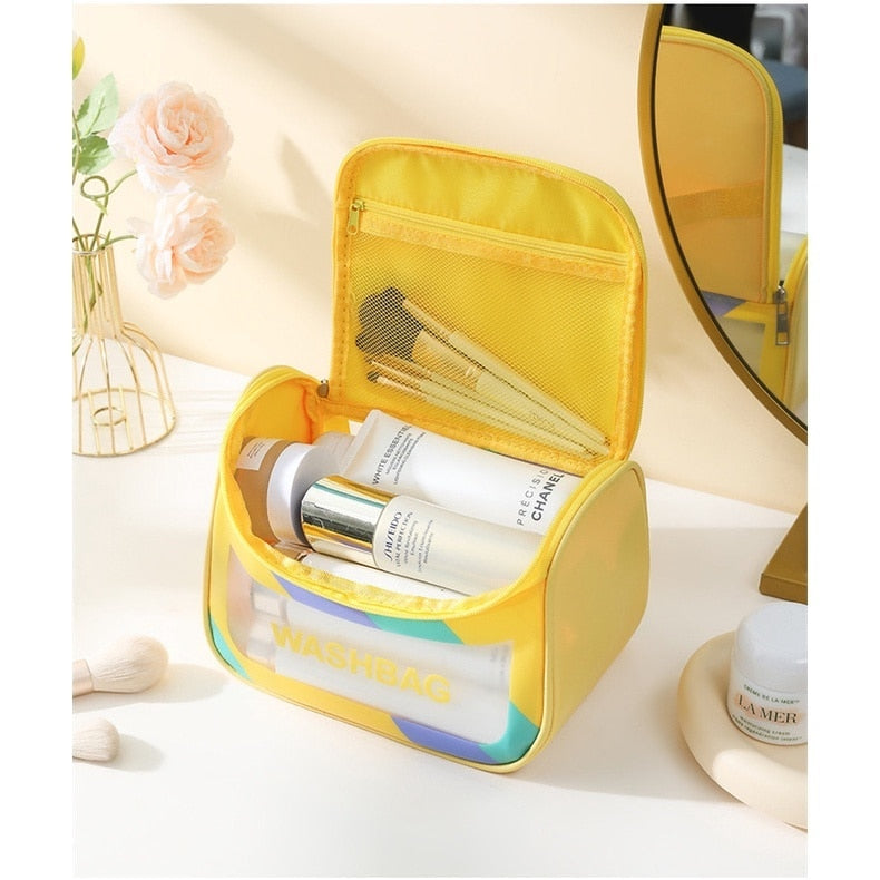 Visibilidade Total: Com a transparência cristalina desta bolsa, você nunca mais perderá tempo procurando suas maquiagens. Encontre facilmente o que precisa e mantenha suas opções de beleza à vista.