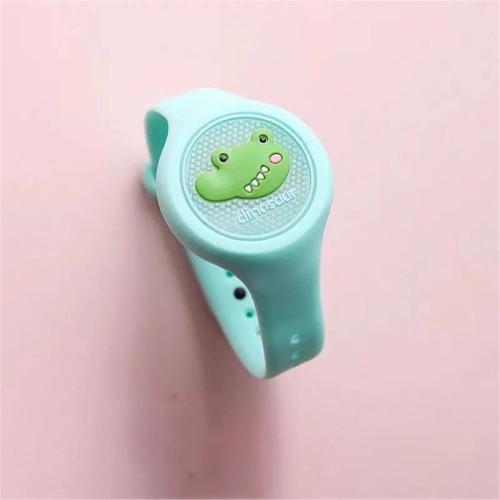 Pequeno e portátil, é confortável para as crianças, para sair, brincar com o relógio repelente Cloockmax de mosquito no pulso delas tranquilamente.