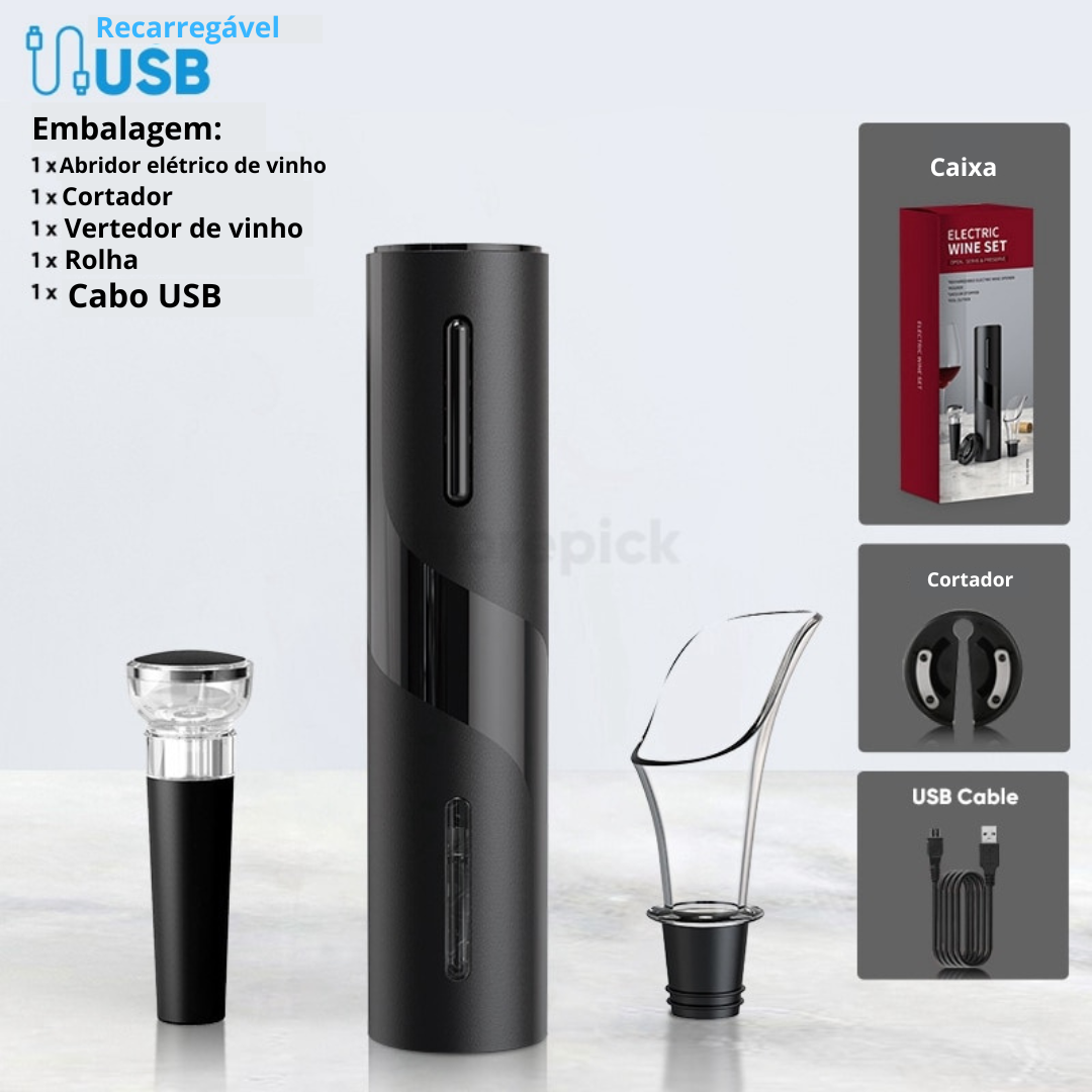 Acabe com os saca rolhas comuns de vez facilite a abertura dos vinhos e passe a ter mais prazer em degustar de cada gota de sua bebida favorita. O melhor não usa pilhas é a bateria que pode ser bateria carrégavel.